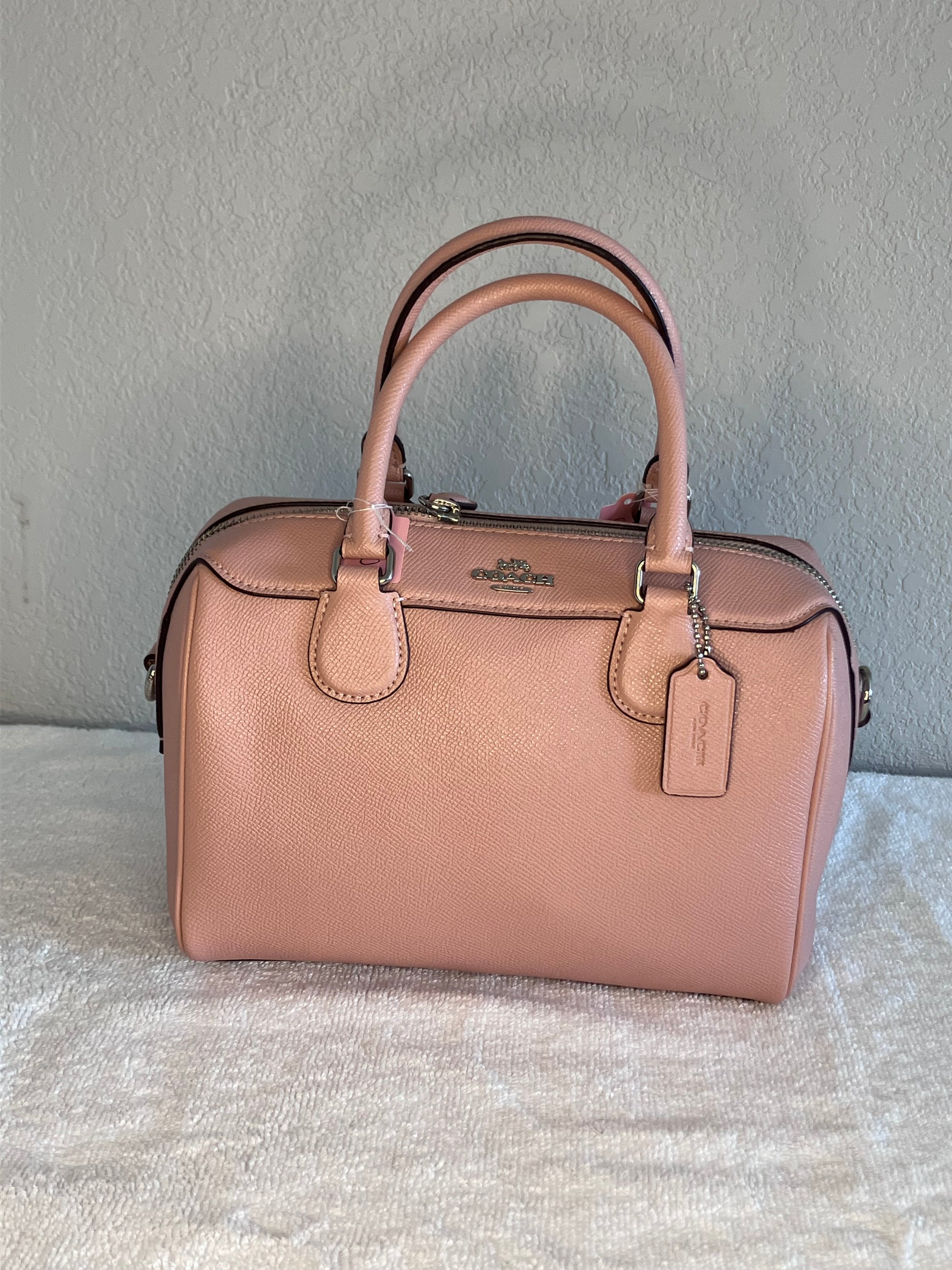 The Coach Mini Bennett Stachel in a delicate light pink shade offers a nearly new condition, combining elegance with practicality. Designed as a crossbody, it provides hands-free convenience while maintaining a compact, stylish profile ideal for everyday use or special occasions. Its refined craftsmanship and subtle color make it a versatile accessory that elevates any outfit with a touch of sophistication.